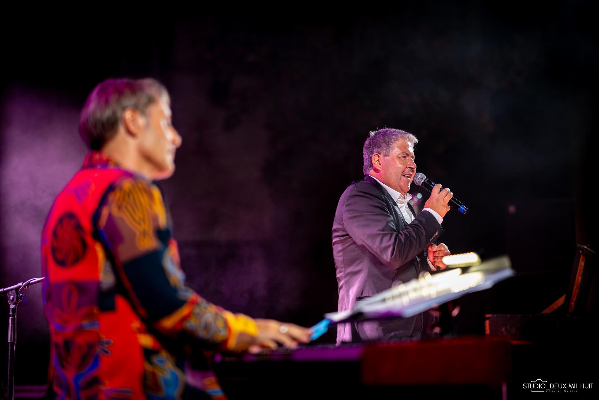 Accompagné au piano par Victor Garriguenc, Olivier Payré mêle musique et comédie pour offrir un moment interactif et surprenant.